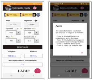 Con el algoritmo matemático obtenido para cada una de las dos aeronaves ha sido programado un App de ayuda a la toma de decisión, con el objetivo de servir de herramienta de predicción de las dimensiones de la huella de una determinada descarga antes de ser realizada. Esta herramienta permite a las tripulaciones de las aeronaves, seleccionar los valores de entrada de las diferentes variables y de forma automática se muestran en pantalla los resultados de la longitud y la anchura de la huella en suelo que se conseguiría (figura 4).